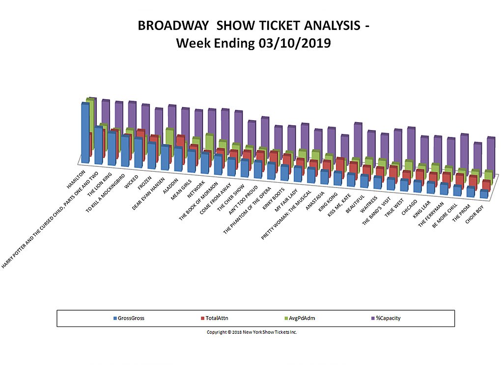 Broadway Show Ticket Sales Analysis Chart for week ending March 10, 2019.