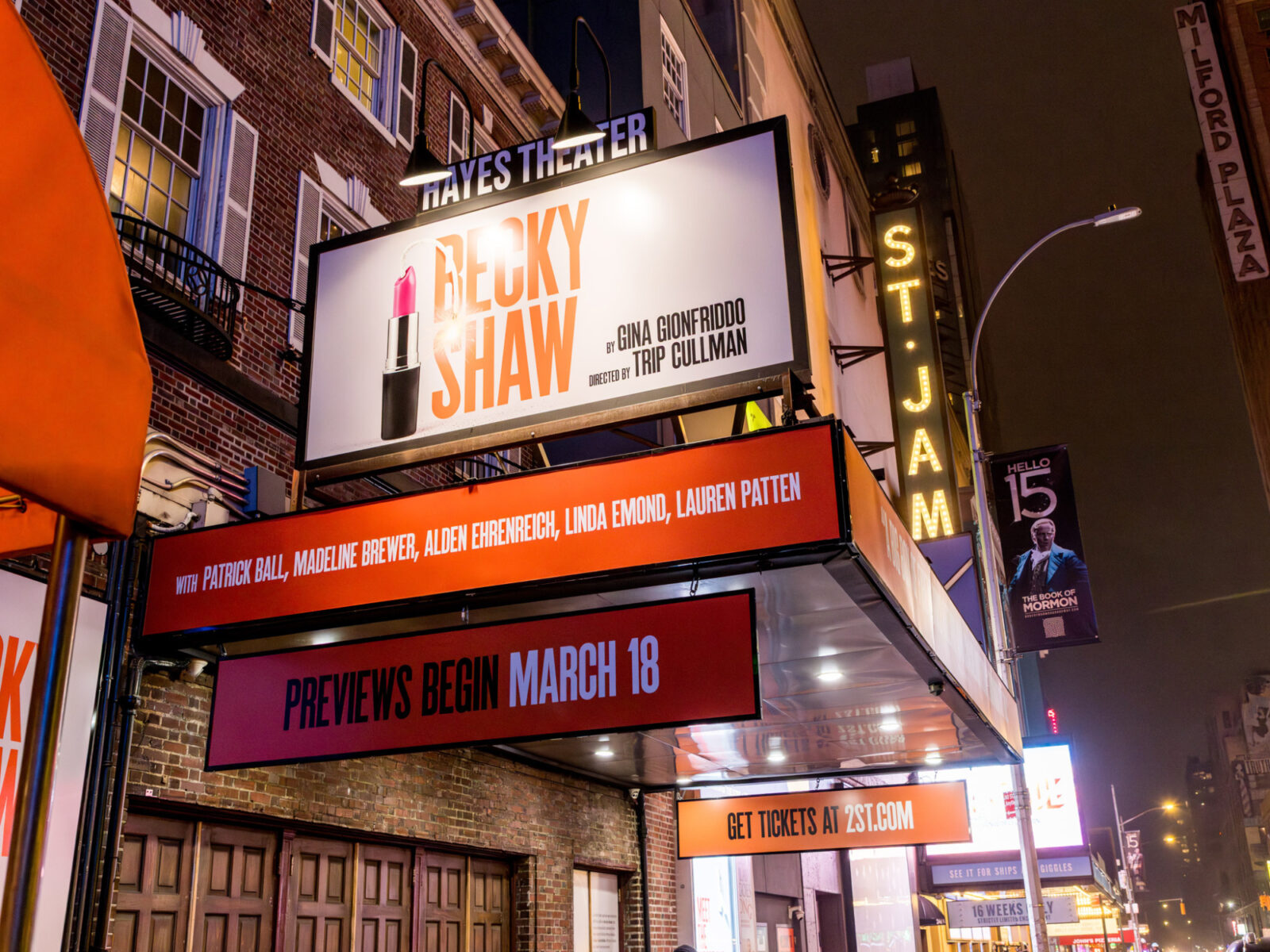 In 2026, Becky Shaw will make its Broadway debut at the Hayes Theater, with previews starting March 18 and opening night set for April 8. This long-anticipated transfer is directed by Trip Cullman and produced by Second Stage Theater.