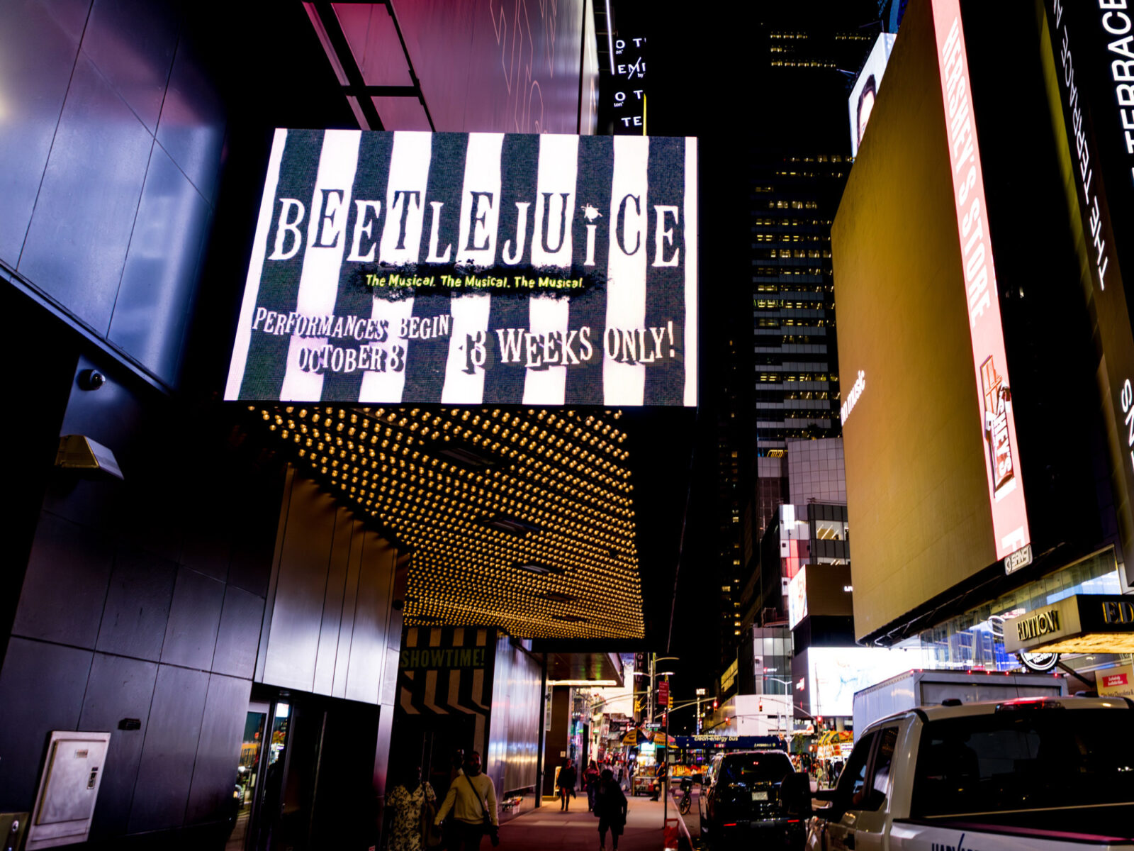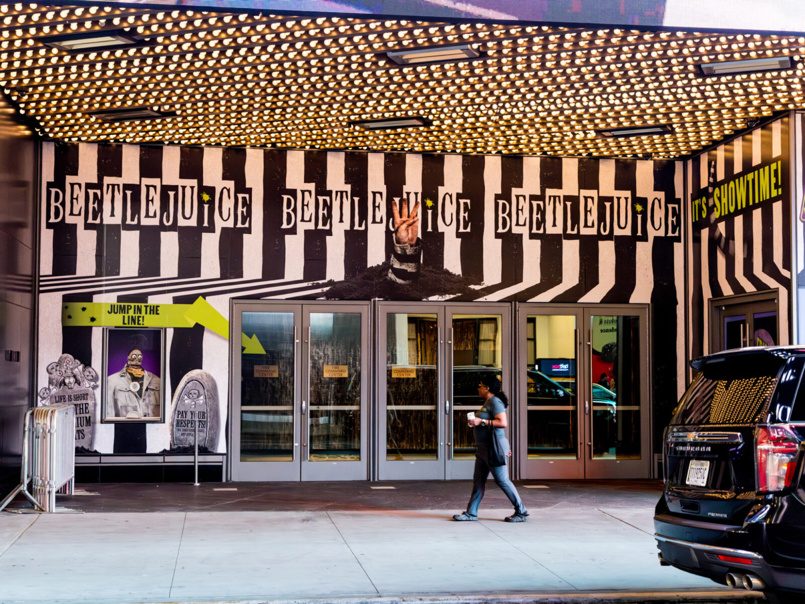 Beetlejuice originally opened in previews at the Winter Garden Theatre on March 28, 2019. It officially opened with a red carpet opening on April 25, 2019 and then closed for the pandemic pause on March 11, 2020. It had been slated to close that year anyway to make room for the Hugh Jackman behemoth revival The Music Man that wanted to appear in the same theatre.